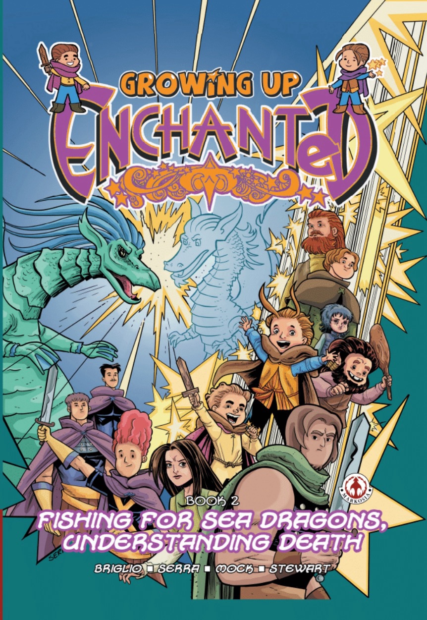 Olianna and the gang returns for a second volume of fantasy adventure for all-ages! Something sinister is awakened from the icy depths of the lake one morning. Still forbidden to use her magic, can Oli and her family evade the sea-dragon’s clammy clutches and escape death’s siren call? Also included in this edition: an unpublished, unproduced script of Oli and the gang facing off against…ghosts!